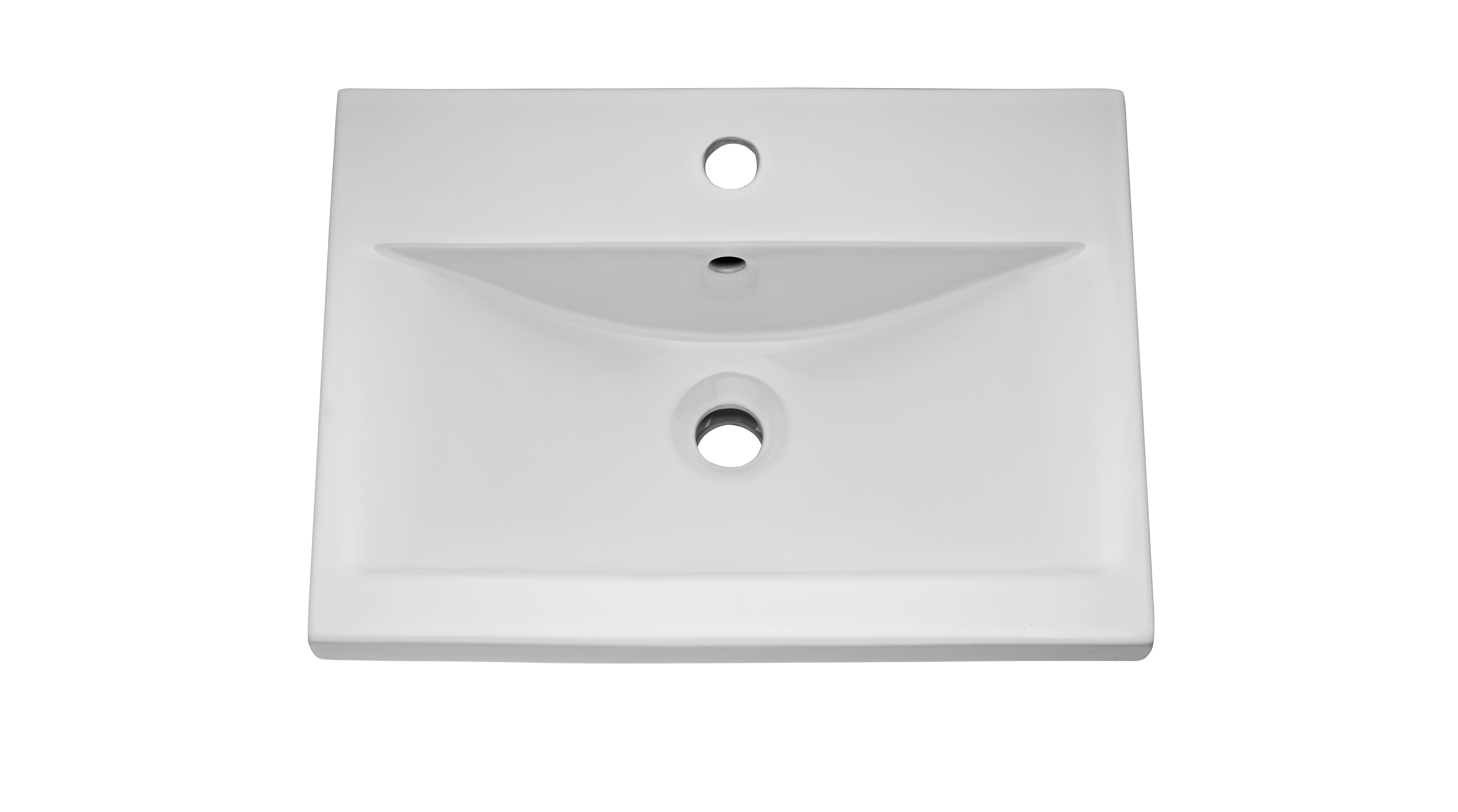 This basin has a deeper profile for a modern contrast with the furniture fascia.