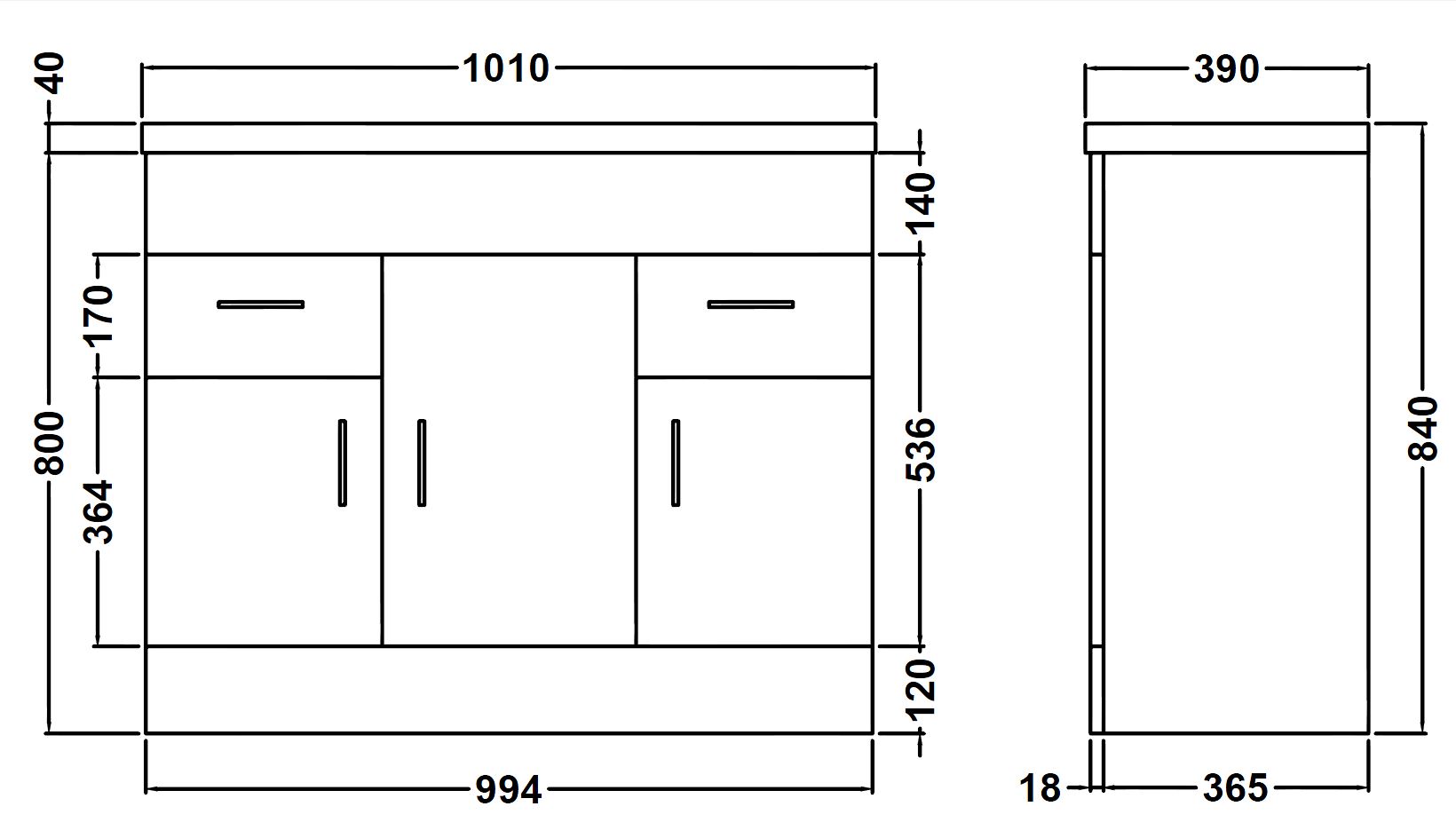 1000mm Floor Standing Cabinet & Mid-Edge Basin