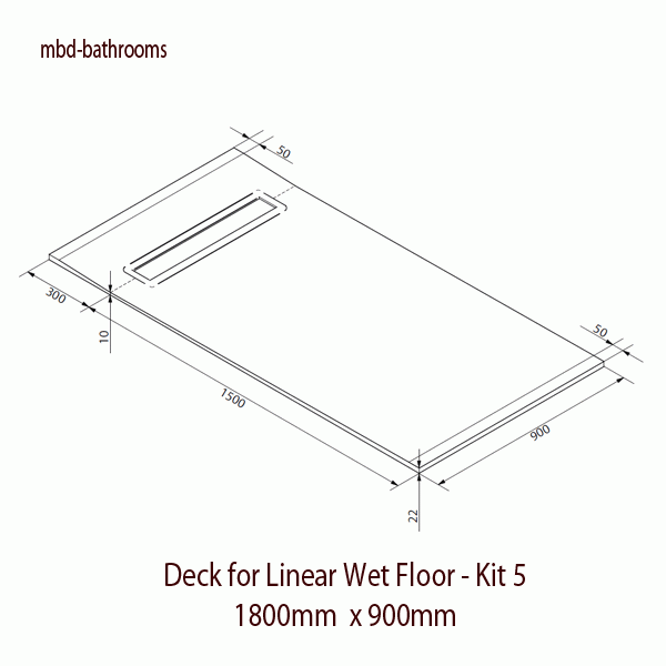 - Preformed shower deck manufactured to exact standards creating a 12mm 2 way fall. Main benefits are a clean linear finish when using large tiles but suitable for all types of tiles.