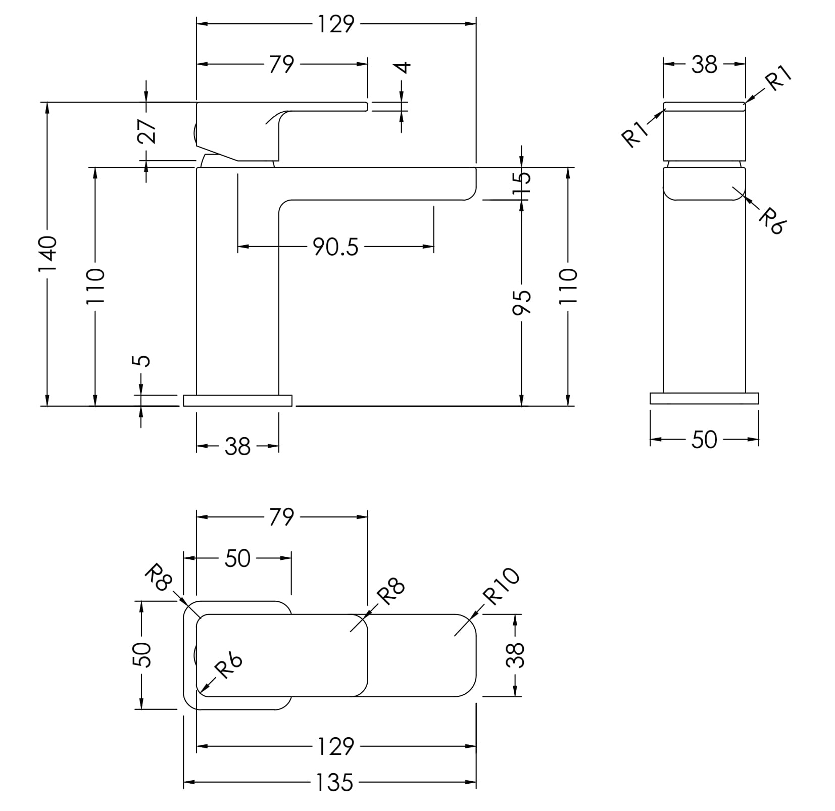 Tap Spout Projection: 90.0000 mm