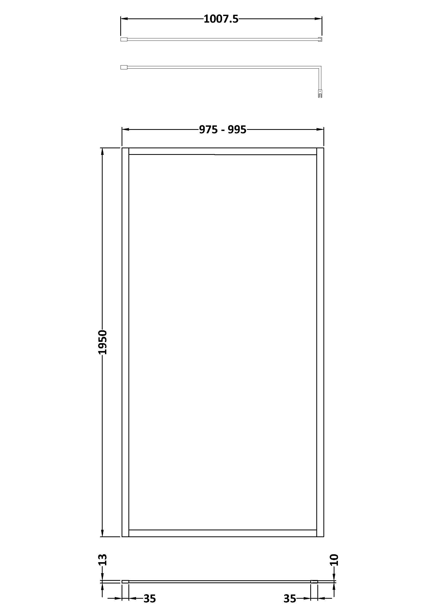 Full Outer Frame Wetroom Screen 1950x1000x8mm