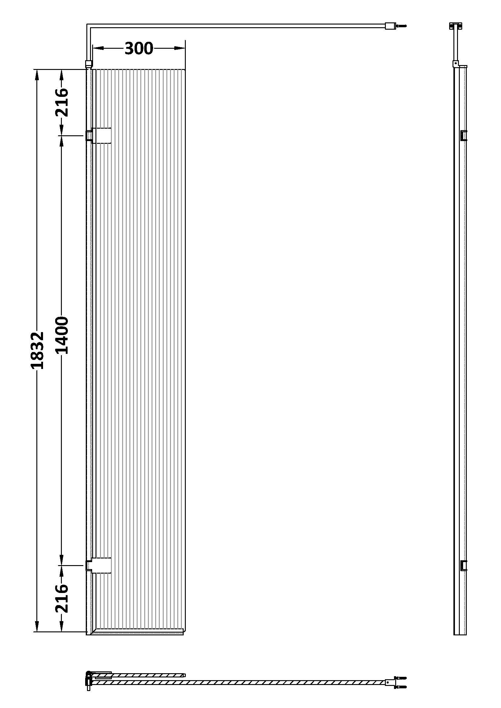 300mm Fluted Hinged Screen with Support Bar by Ultra
