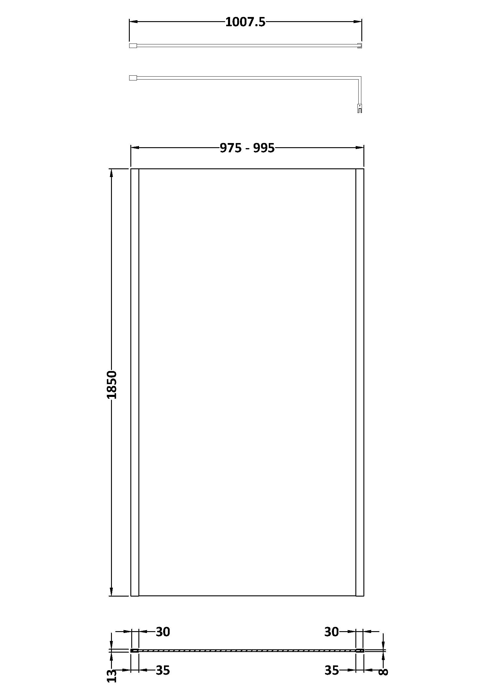 1000mm Outer Framed Wetroom Screen with Support Bar