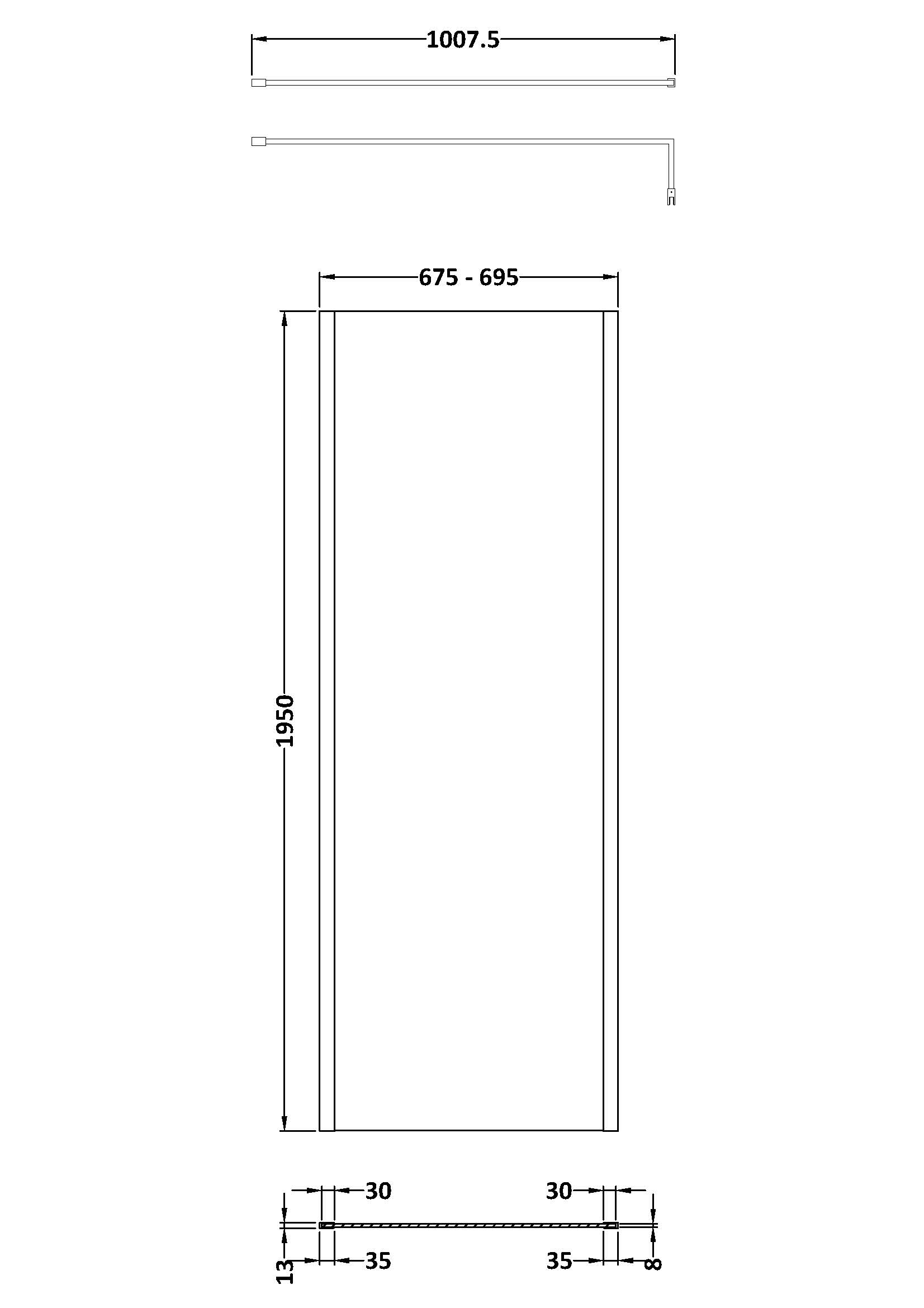 700mm Outer Framed Wetroom Screen with Support Bar by Hudson Reed