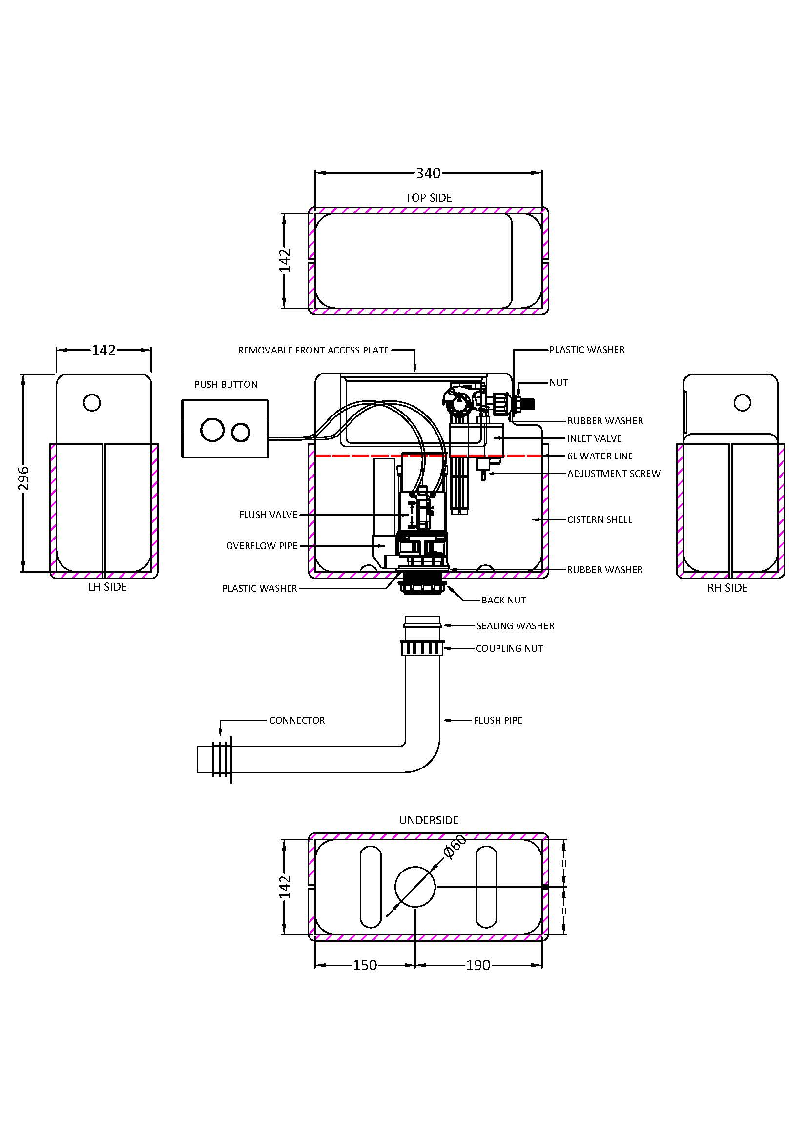 Pneumatic Dual Flush Universal Access Concealed Cistern by Ultra